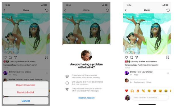 “You can restrict someone by swiping left on a comment, through the Privacy tab in Settings, or directly on the profile of the account you intend to restrict. Once Restrict is enabled, comments on your posts from a person you have restricted will only be visible to that person. You can choose to view their comment by tapping ‘See Comment;’ approve the comment so everyone can see it; delete it; or ignore it. You won’t receive any notifications for comments from a restricted account.”